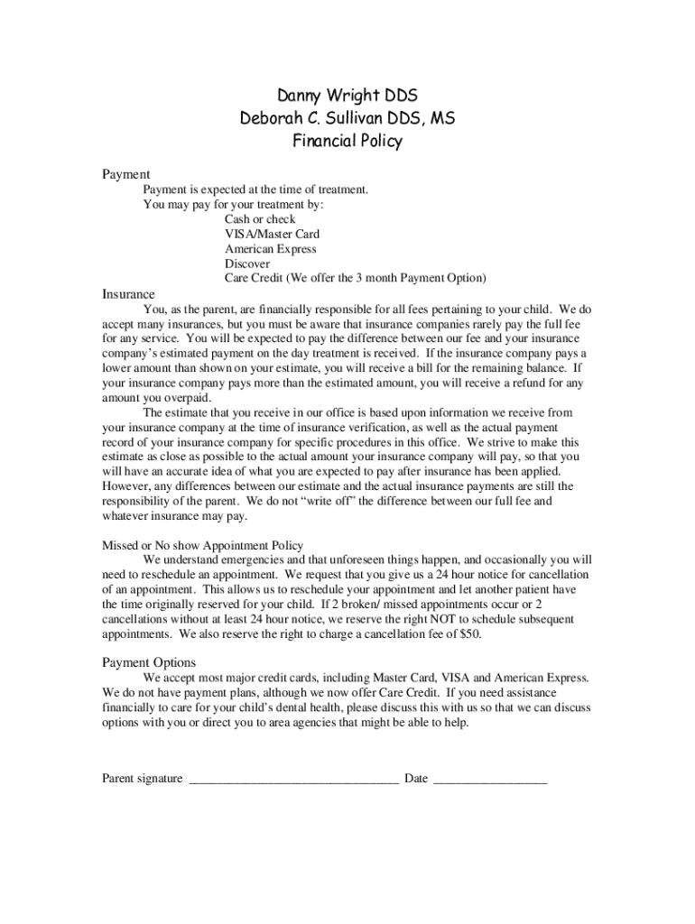 Get the free New Financial Policy - Pediatric Dentistry of Mansfield
