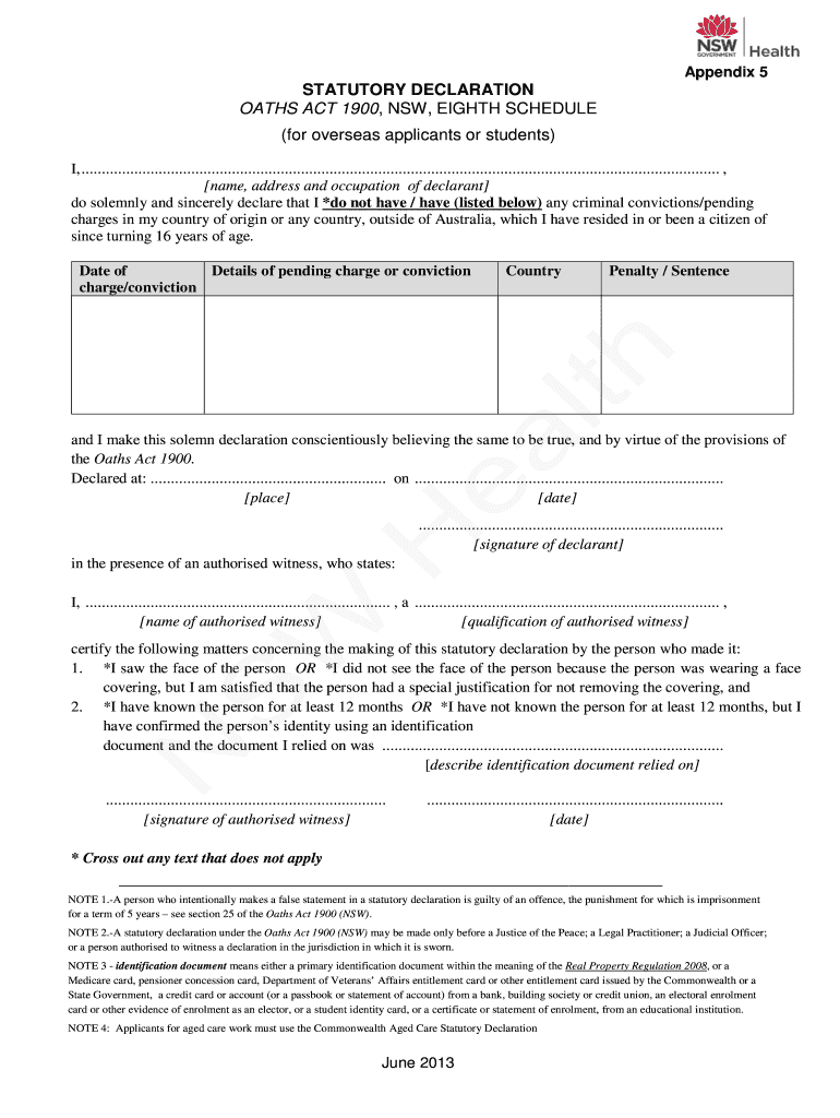 Appendix 5STATUTORY DECLARATION OATHS ACT 1900, NSW, EIGHTH SCHEDULE (for overseas applicants or students) I, .............................................................................................................................................................,