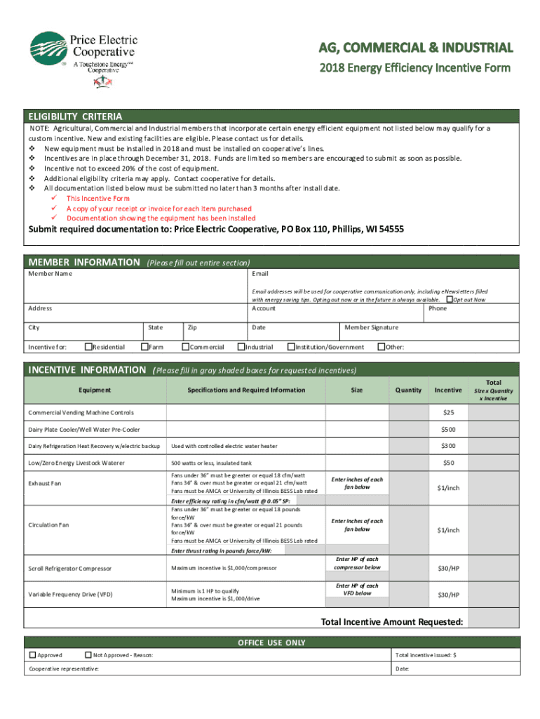 ELIGIBILITY CRITERIA NOTE: Agricultural, Commercial and Industrial members that incorporate certain energy efficient equipment not listed below may qualify for a custom incentive. New and existing