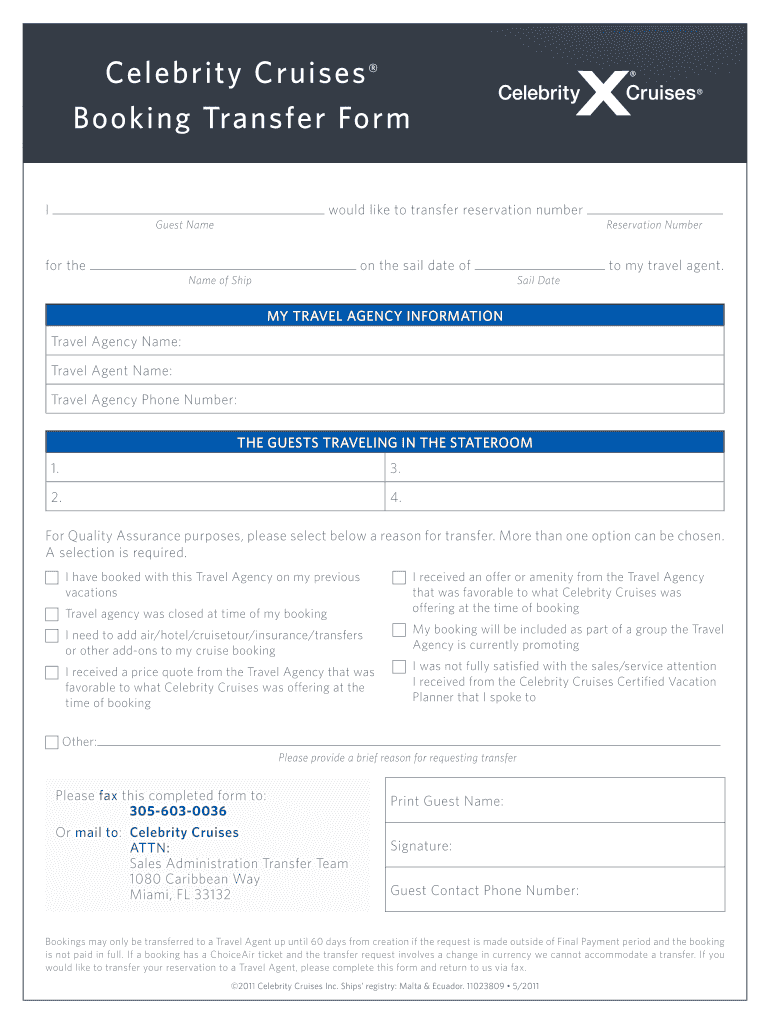 Get the free Celebrity Cruises Booking Transfer Form