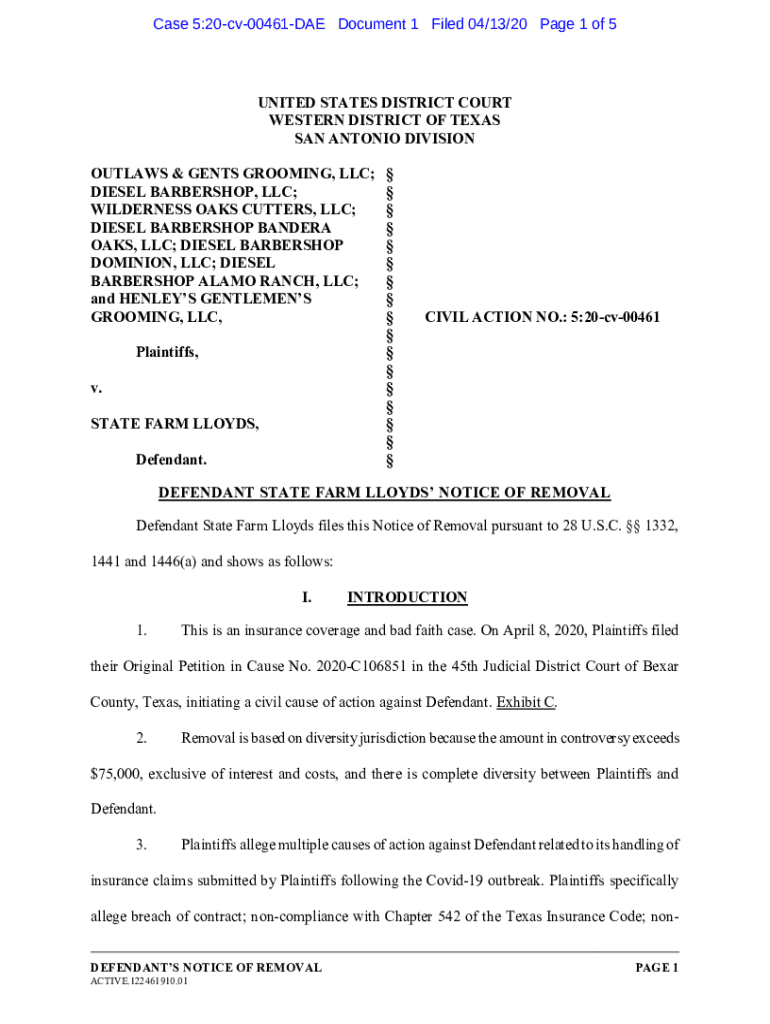 Get the free Diesel Barbershop, LLC v. State Farm LloydsLexisNexis ...
