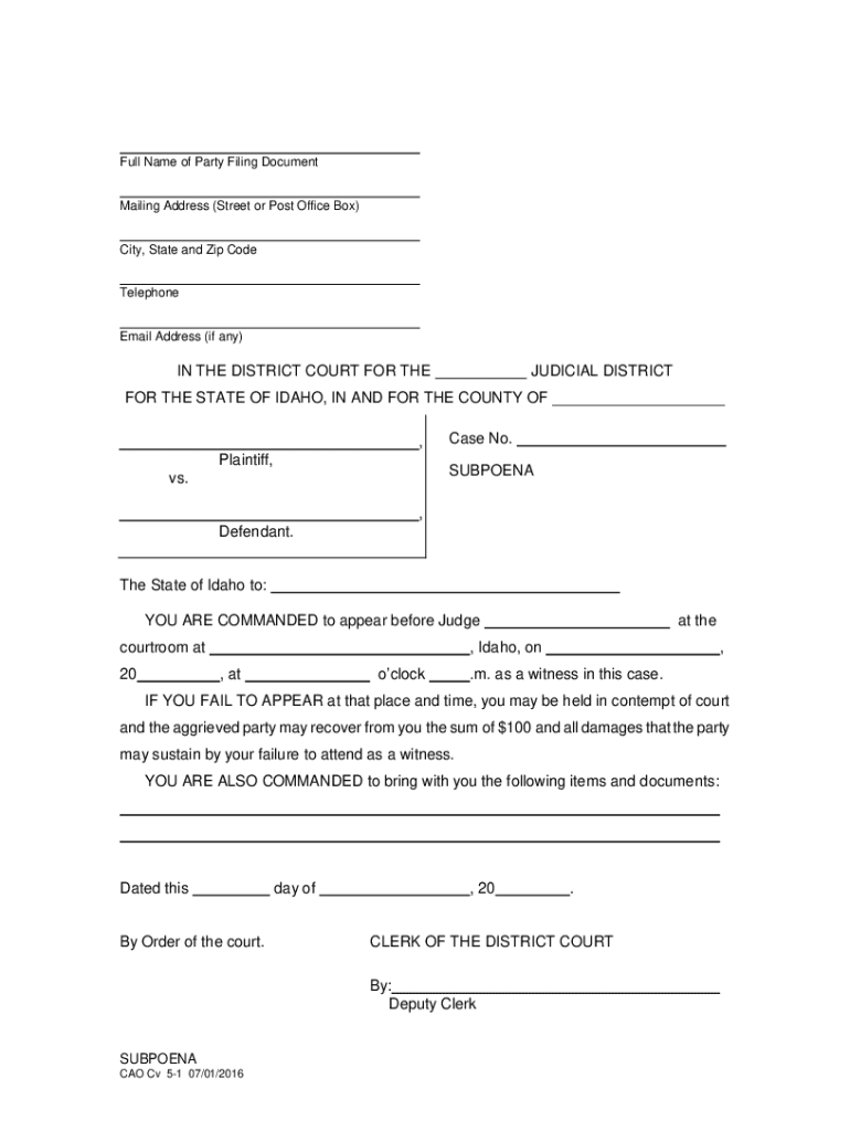 Get the free DOC Basic Pro Se Pleading Form - Ada County - courtselfhelp idaho