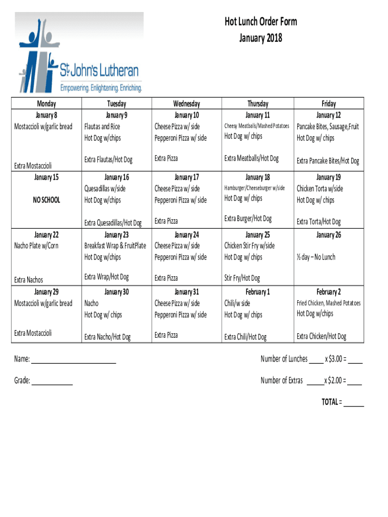 Hot Lunch Order Form
