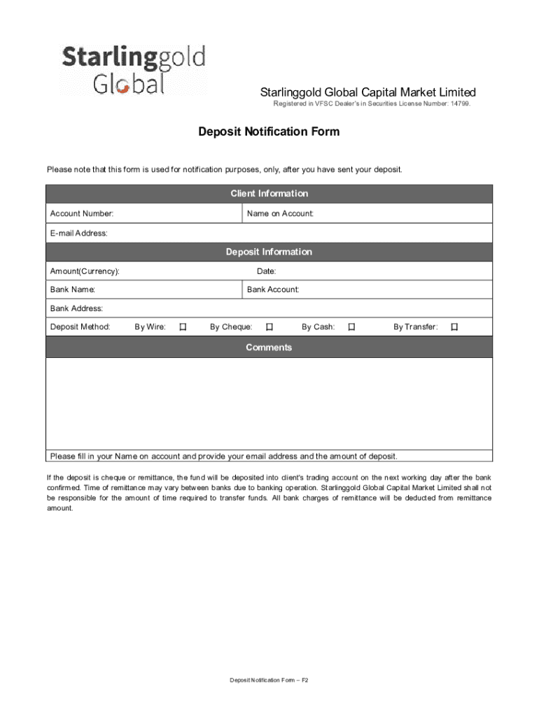 Registered in FSC Dealers in Securities License Number: 14799. Deposit Notification Form