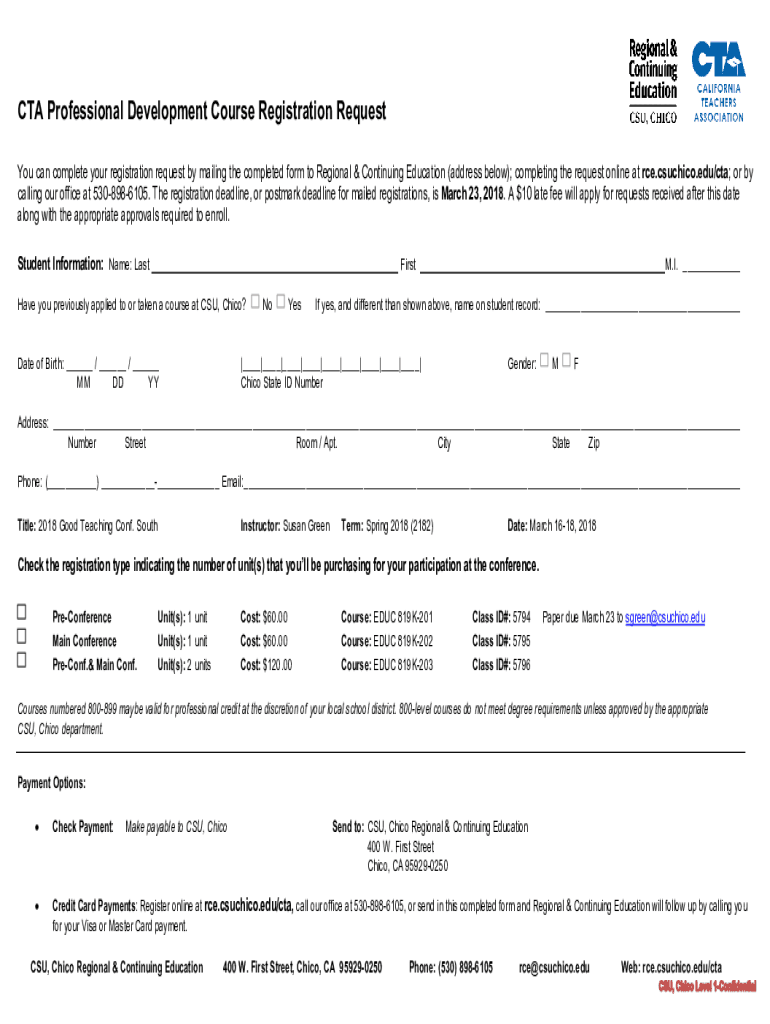 CTA Professional Development Course Registration Request You can complete your registration request by mailing the completed form to Regional & Continuing Education (address below); completing the