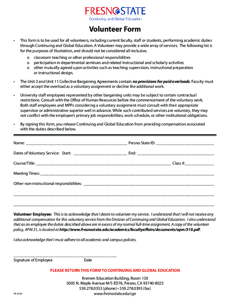This form is to be used for all volunteers, including current faculty, staff or students, performing academic duties