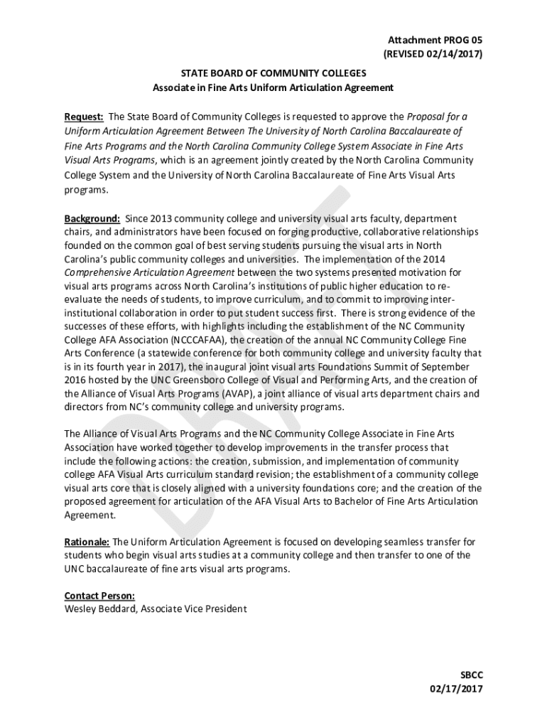 Associate in Fine Arts Uniform Articulation Agreement