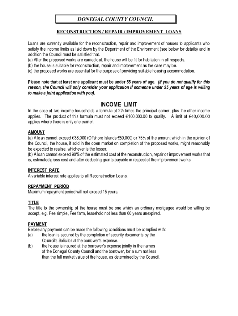 Get the free LOANS FOR RECONSTRUCTION, REPAIR OR IMPROVEMENT OF A HOUSE