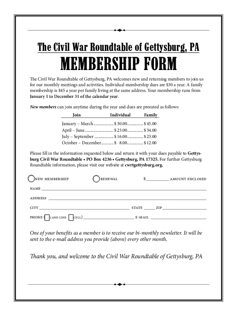 Get the free PDF MEMBERSHIP FORM - Gettysburg Civil War Roundtable
