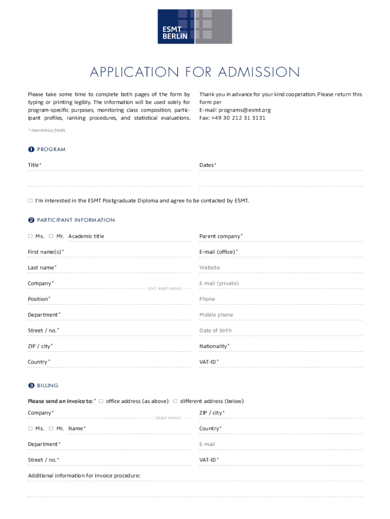 APPLICATION FOR ADMISSION