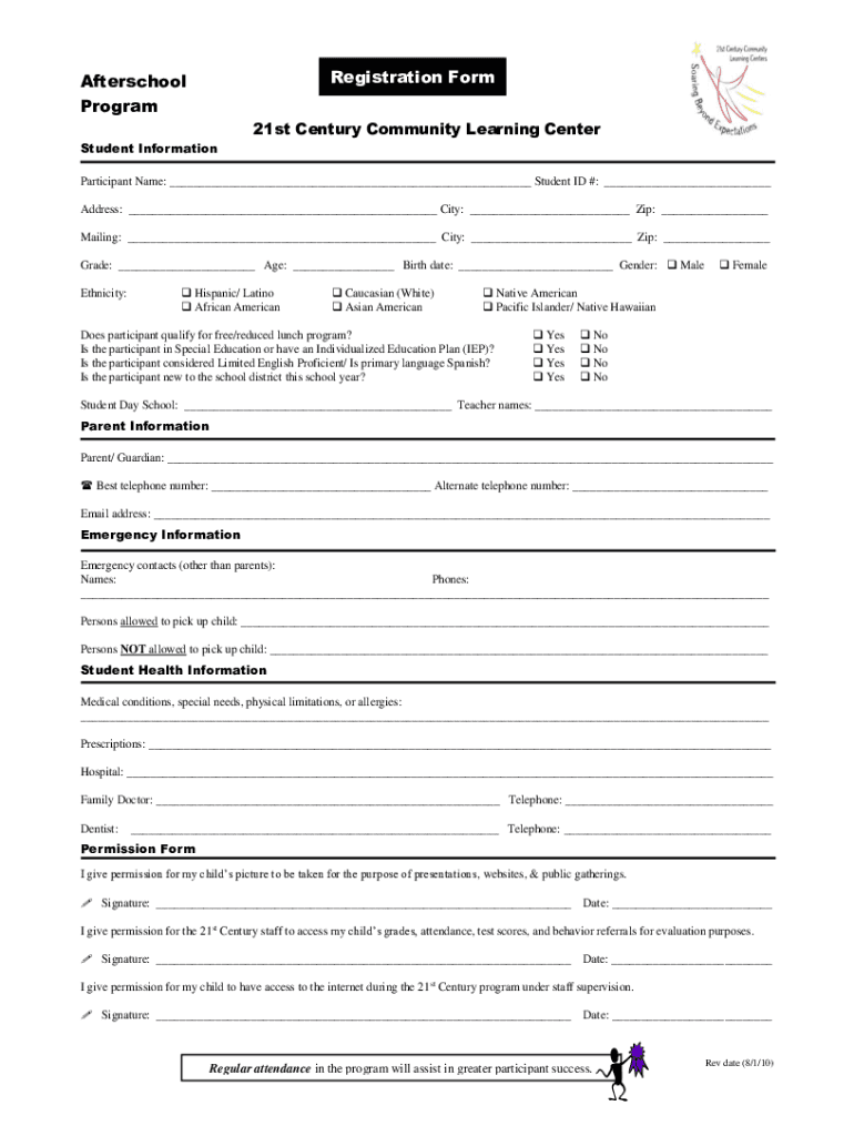 How to fill out afterschool registration form program