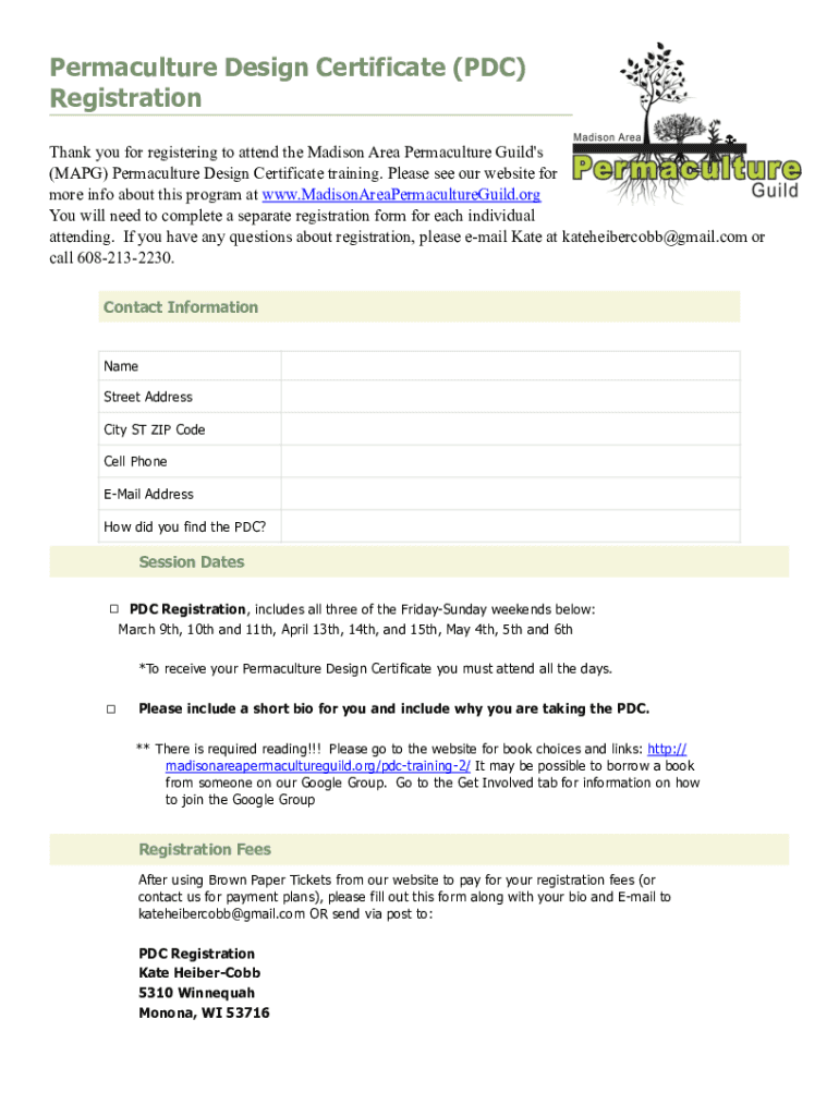 Individuals who have completed a recognized permaculture design course are required to file for the PDC.