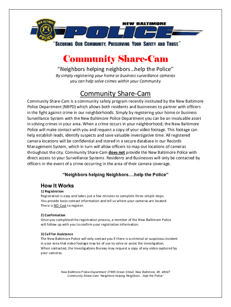 To fill out the neighborhood security cameras sacrifice, participants usually need to complete a form provided by their local authority that outlines their commitment, the details of the installed cameras, and any agreements regarding data sharing.