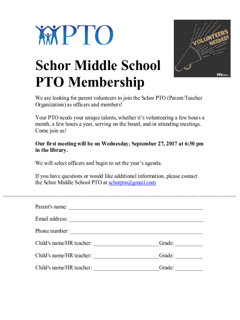 We are looking for parent volunteers to join the SCOR PTO (Parent/Teacher