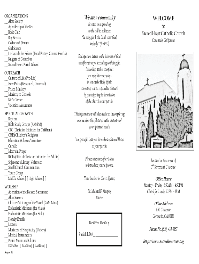ORGANIZATIONS Altar Society Apostleship of the Sea Book Club Boy Scouts Coffee and Donuts Girl Scouts La Casa de los Pores (Food Pantry: Canned Goods) Knights of Columbus Sacred Heart Parish School