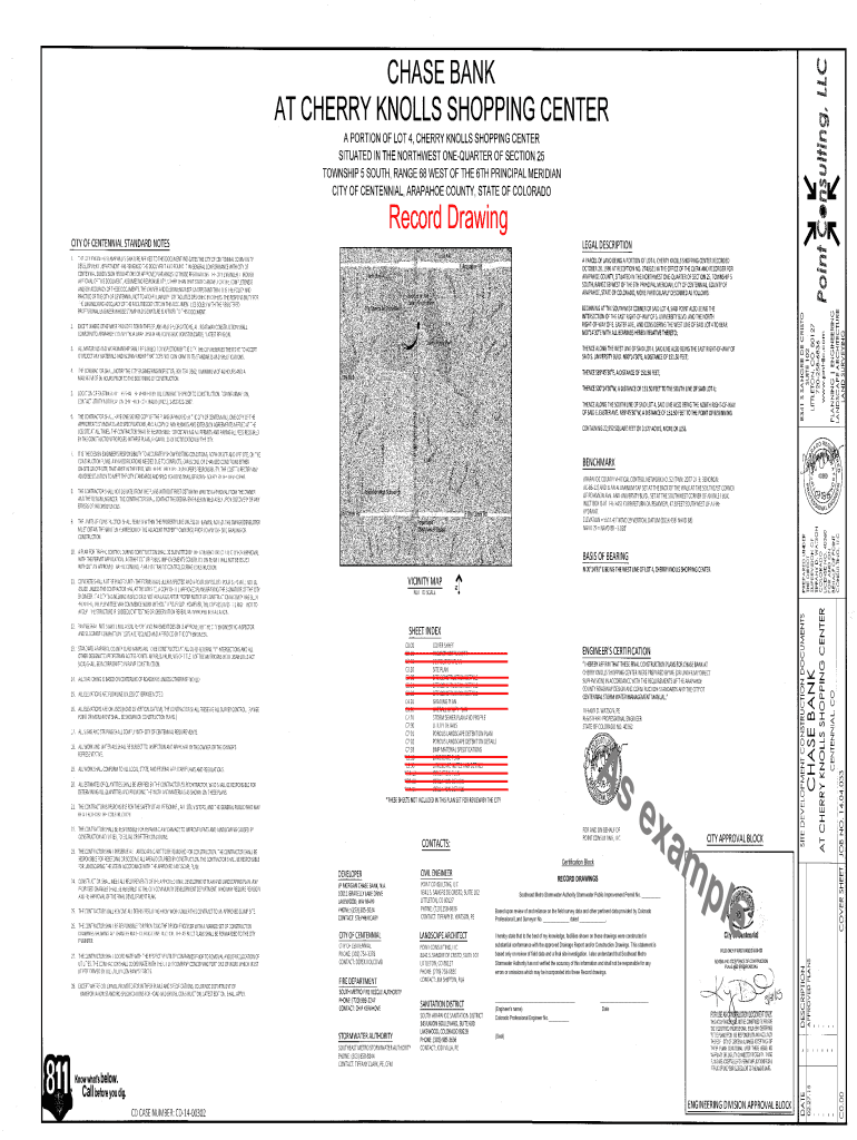 Record Drawings Certification Block RECORD DRAWINGS ex am Southeast Metro Stormwater Authority Stormwater Public Improvement Permit No. Based upon review of and reliance on the field survey data and