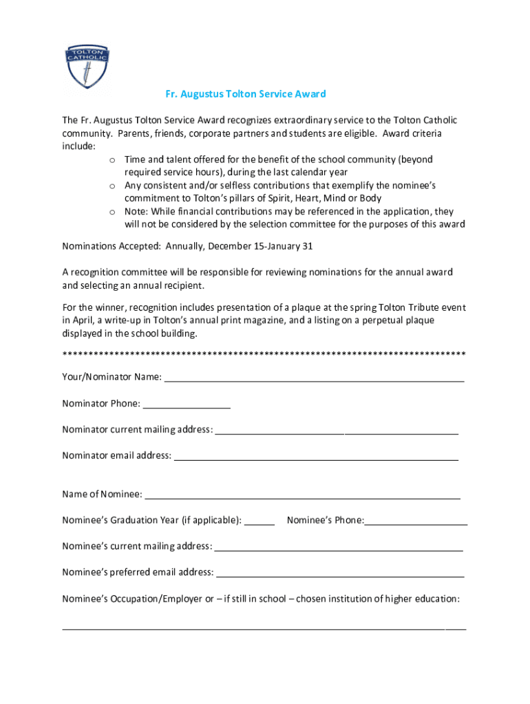 Get the free PDF Fr. Augustus Tolton Service Award - Fr. Tolton Catholic High School