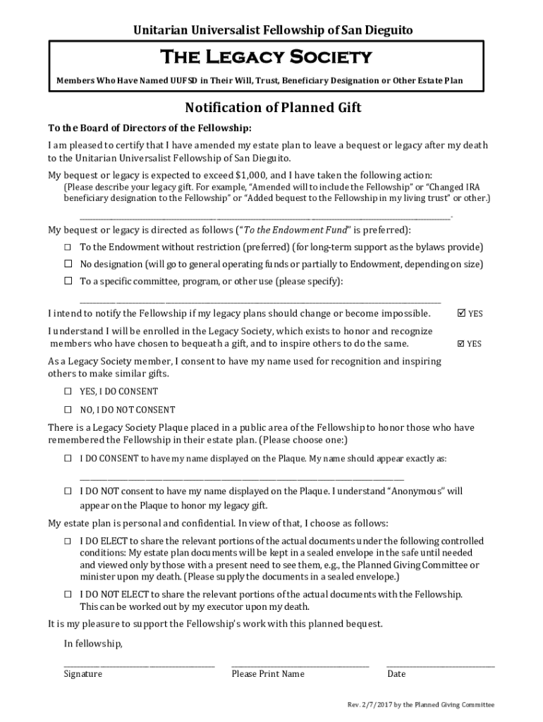 Unitarian Universalist Fellowship of San DieguitoThe Legacy Society