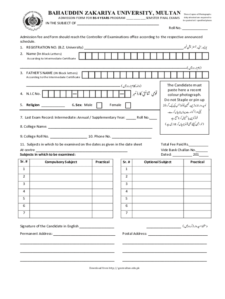 Downloads -Bahauddin Zakariya University is not the form you're looking for?Search for another form here.