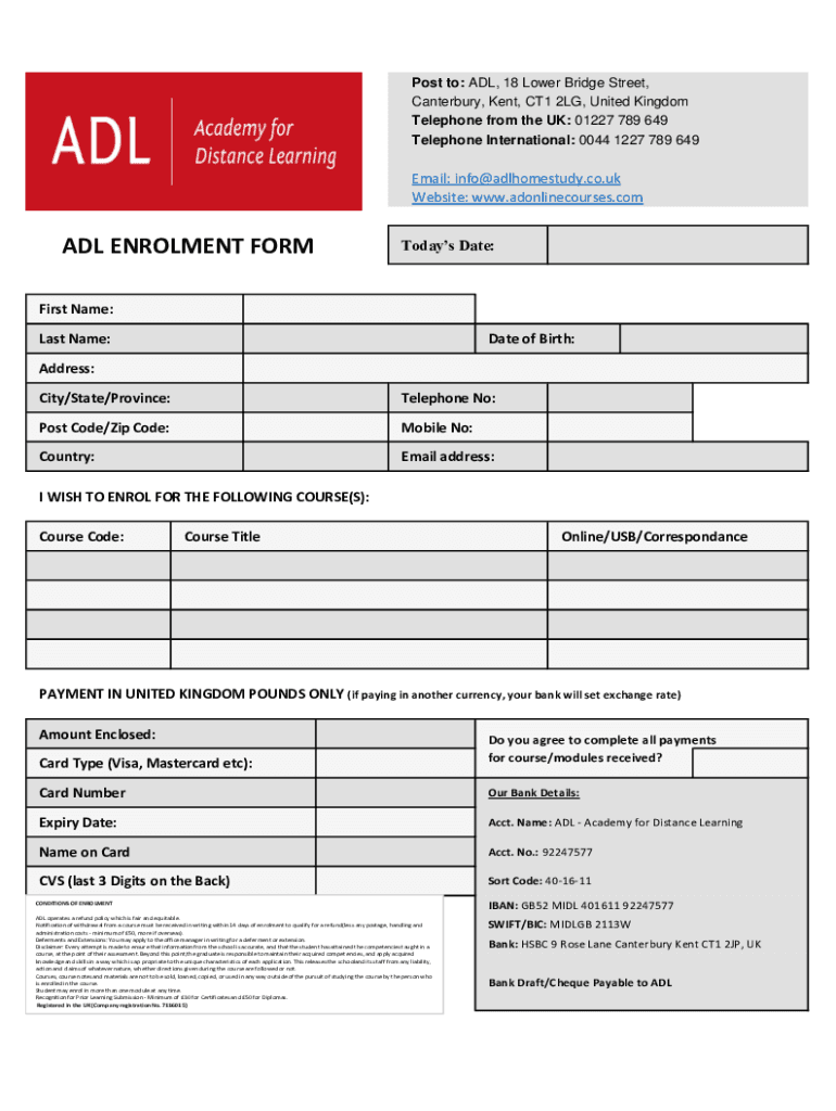 Telephone International: 0044 1227 789 649Email: info@adlhomestudy.co.uk