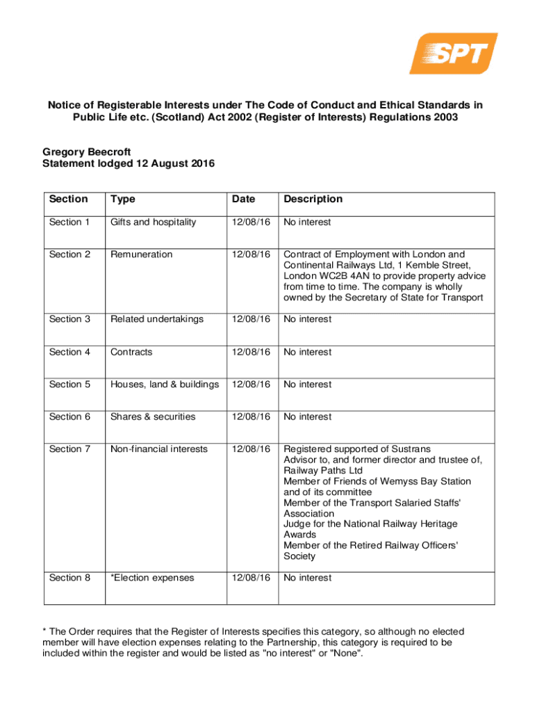 Public Life etc. (Scotland) Act 2002 (Register of Interests) Regulations 2003Gregory Beecroft