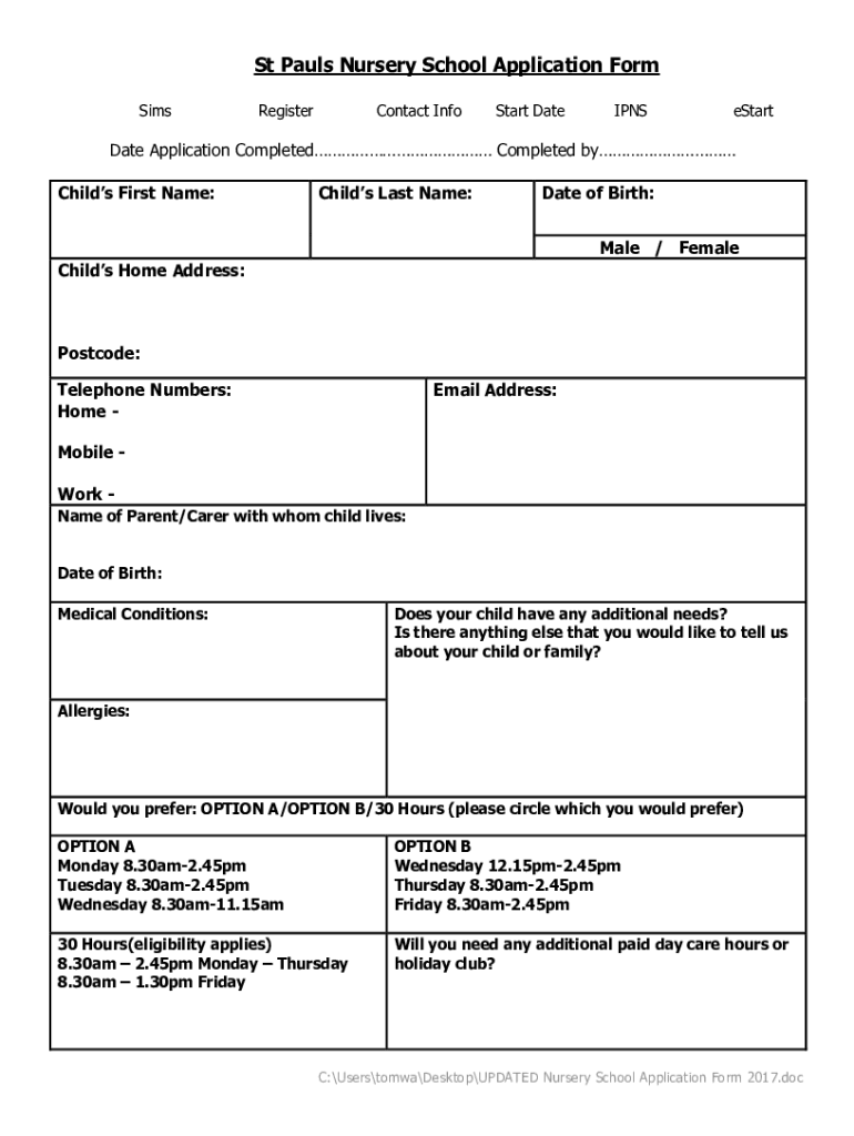 Step 2: Download the nursery admission form from the school's website or collect it from the school's admissions office