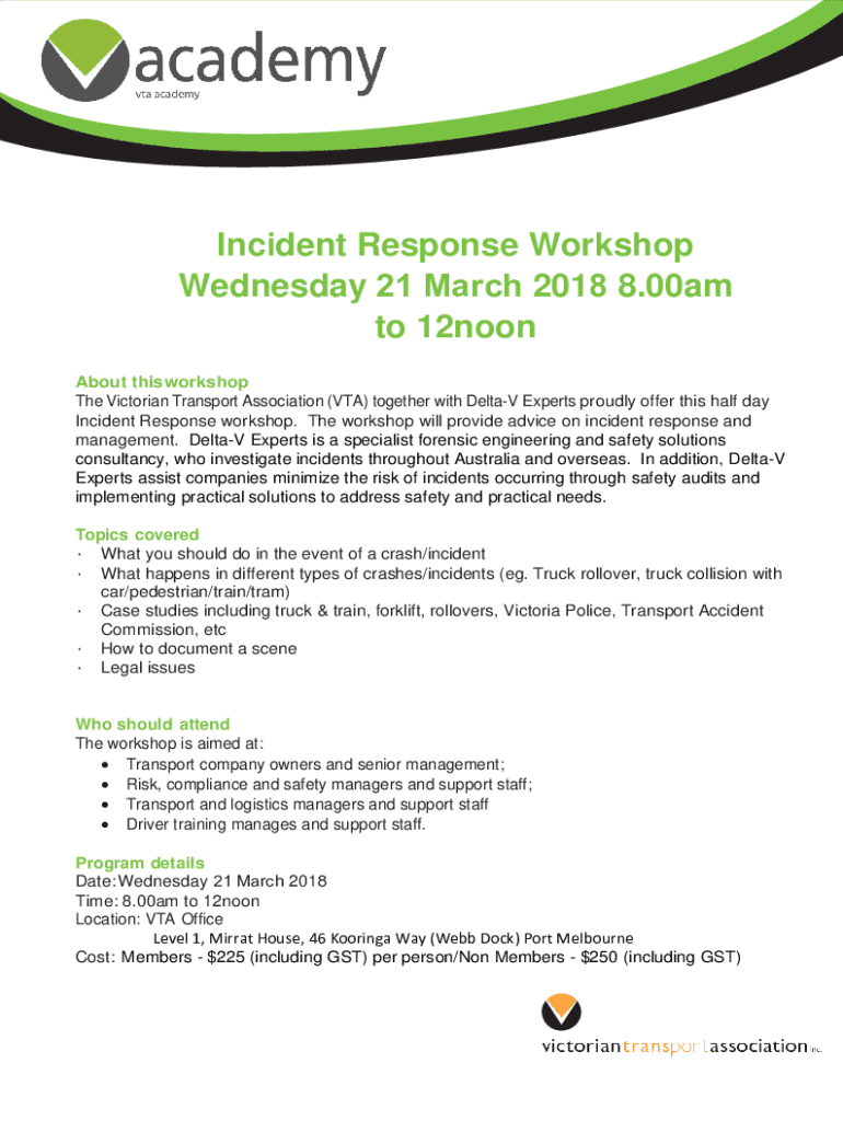The Victorian Transport Association (VTA) together with Delta Experts proudly offer this half day