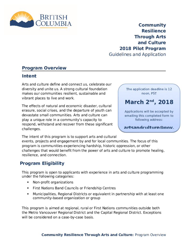 Community Resilience Through Arts and Culture Program - Province ... template instructions