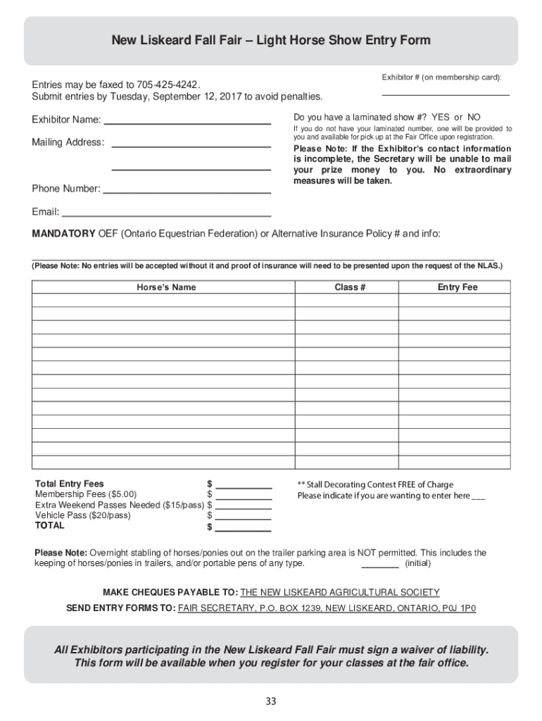 New Listened Fall Fair Light Horse Show Entry Form (KLELWRU RQPHPEHUVKLSFDUG Entries may be ID HG to 705. Submit entries by Tuesday, September 201 to avoid penalties. (KLELWRU1DPHDo you have a laminated
