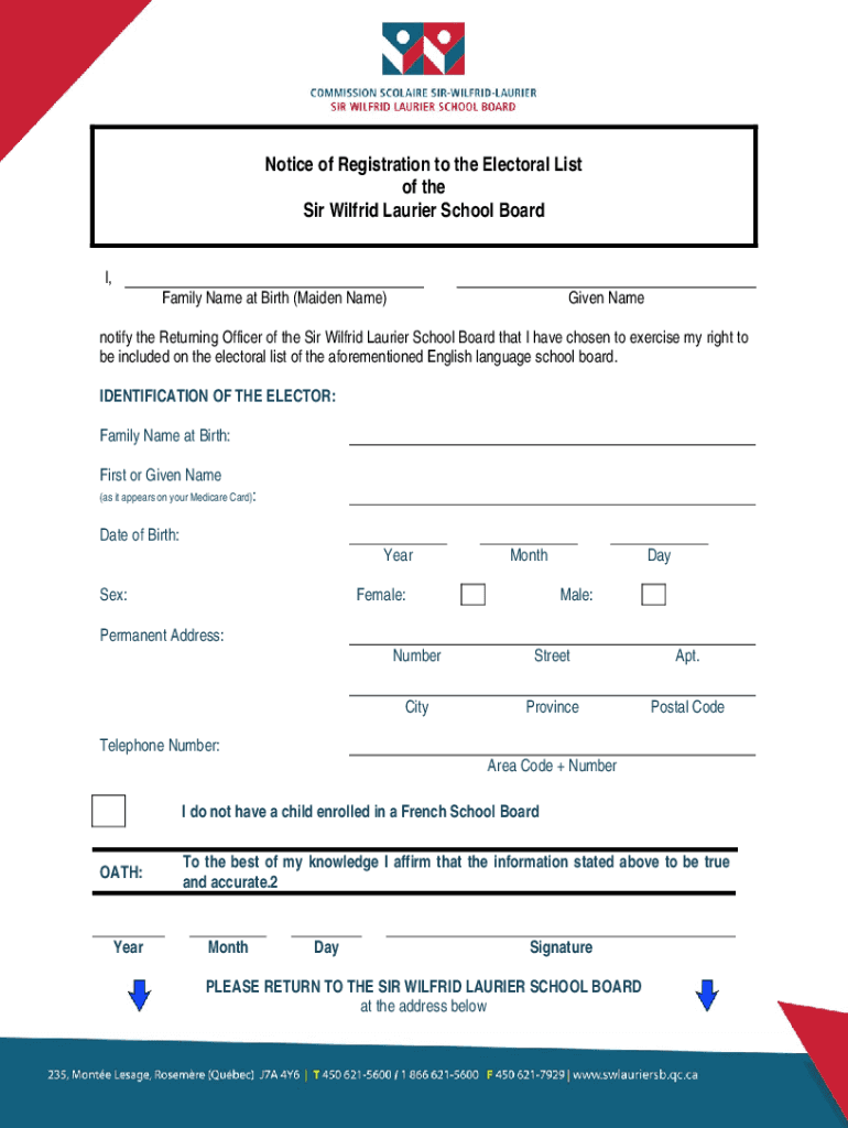 Get the free Notice of Registration to the Electoral ... - Sir Wilfrid Laurier
