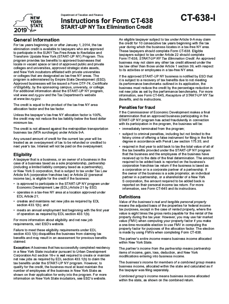 Get the free Instructions for Form CT-638 START-UP NY Tax Elimination ...