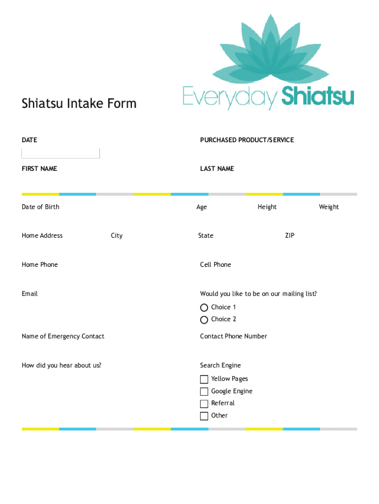 Get the free PDF Shiatsu Intake Form - Everyday Shiatsu Louisville