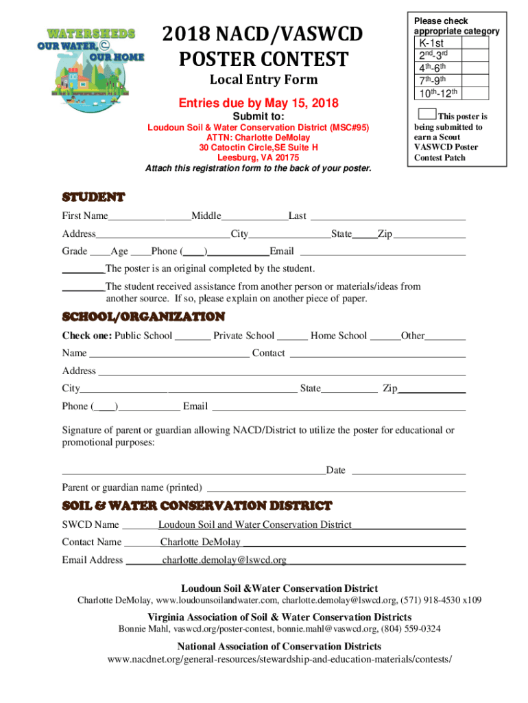 2018 NAD/VASCO POSTER CONTEST Local Entry Form Entries due by May 15, 2018, Submit to: London Soil & Water Conservation District (MSC#95) ATTN: Charlotte Demo lay 30 Catching Circle, SE Suite H Leesburg,