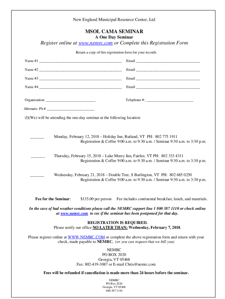 New England Municipal Resource Center, Stimson CAME SEMINAR A One Day SeminarRegister online at www.nemrc.com or Complete this Registration Form Retain a copy of this registration form for your records