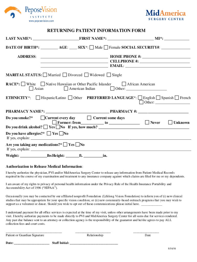 Get, Create, Make and Sign online returning patient information