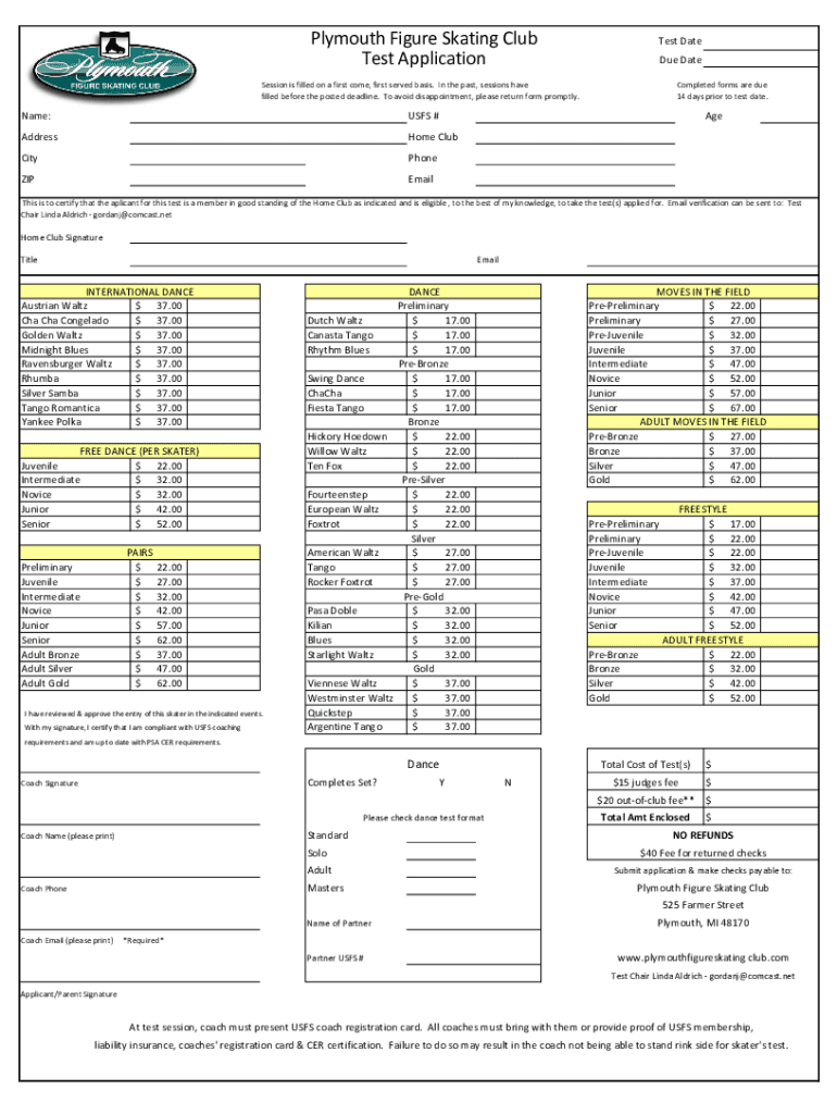 Get the free Online PFSC Test Form - Plymouth Figure Skating Club Fax ...