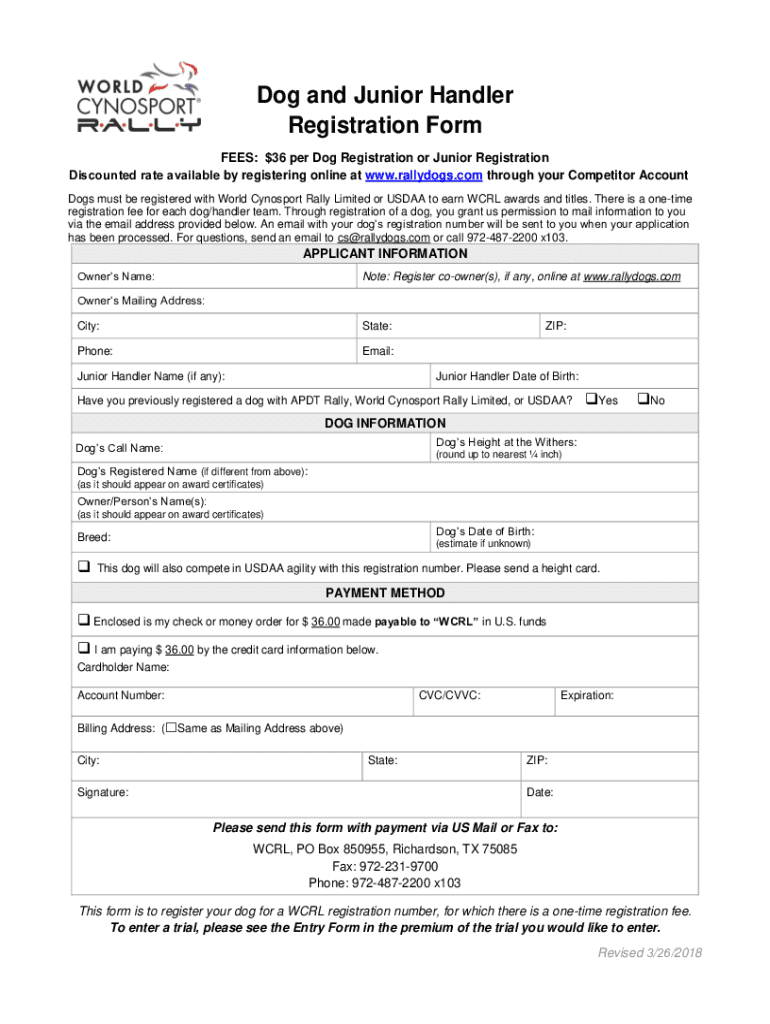 Get the free Dog and Junior Handler Registration Form - RallyDogs.com