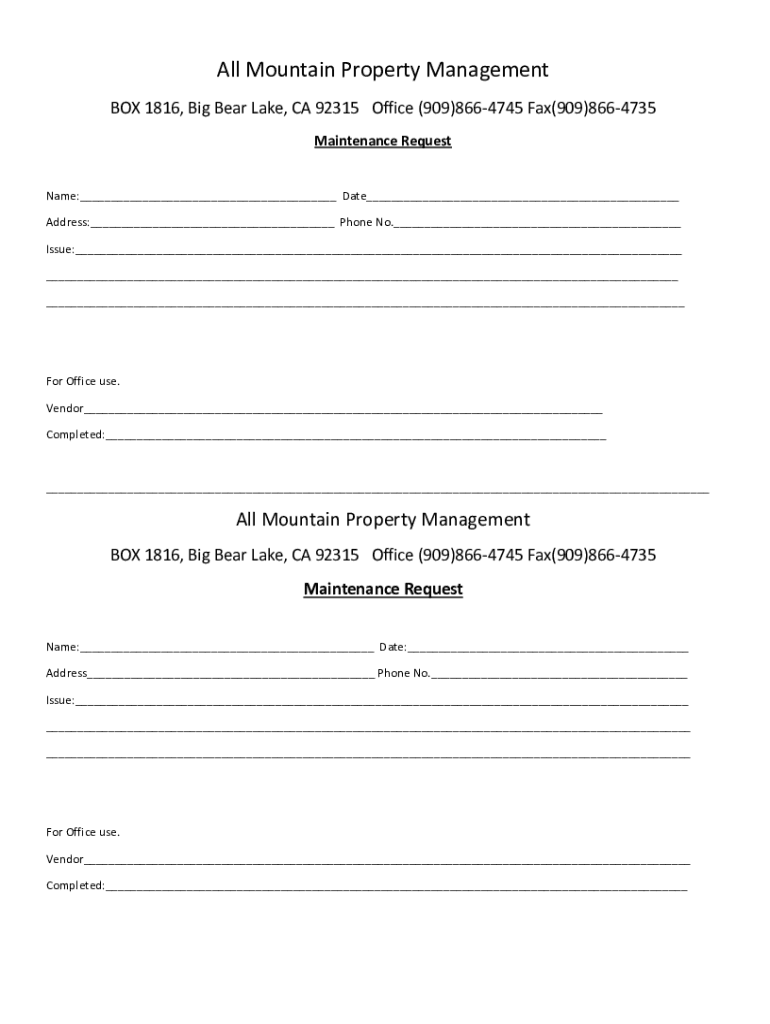 Get the free PDF Maintenance Request Form - All Mountain Property Management