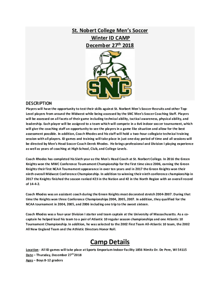 Get the free St. Norbert College Men's Soccer Program Information - Need and ...