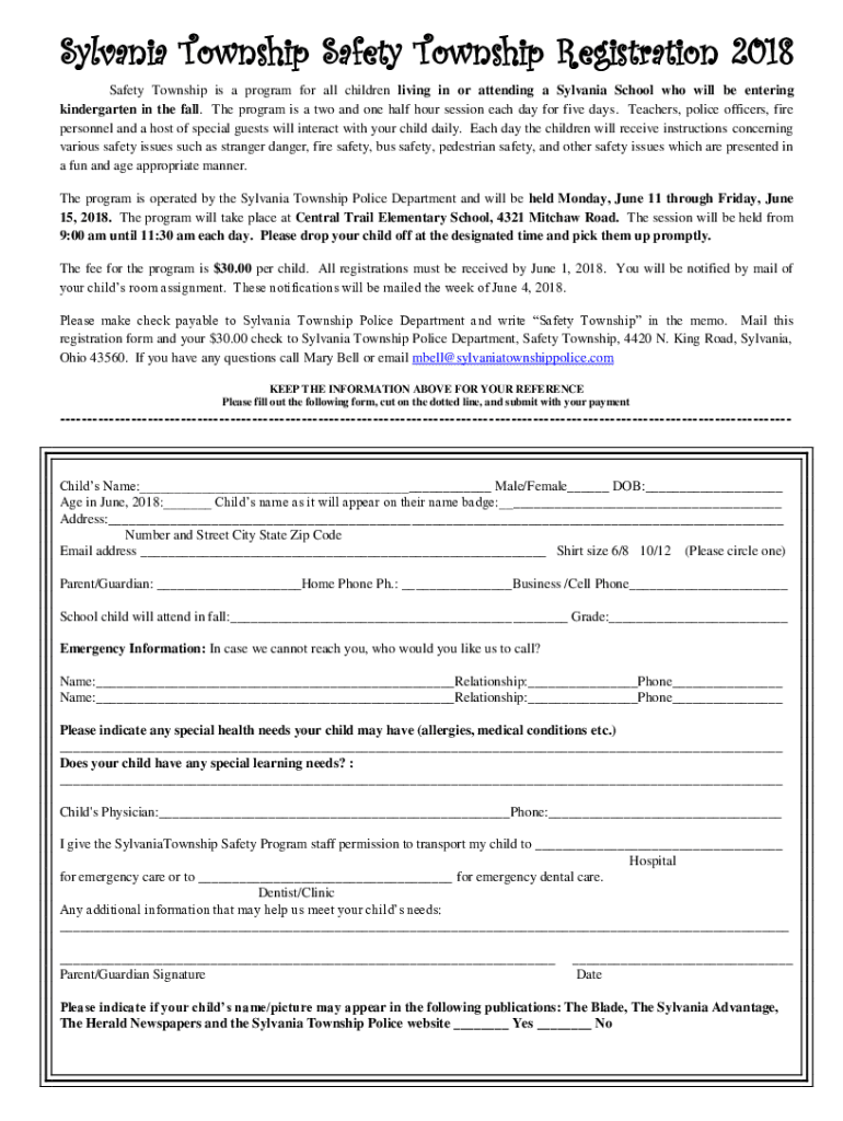 Safety Township is a program for all children living in or attending a Sylvia School who will be entering