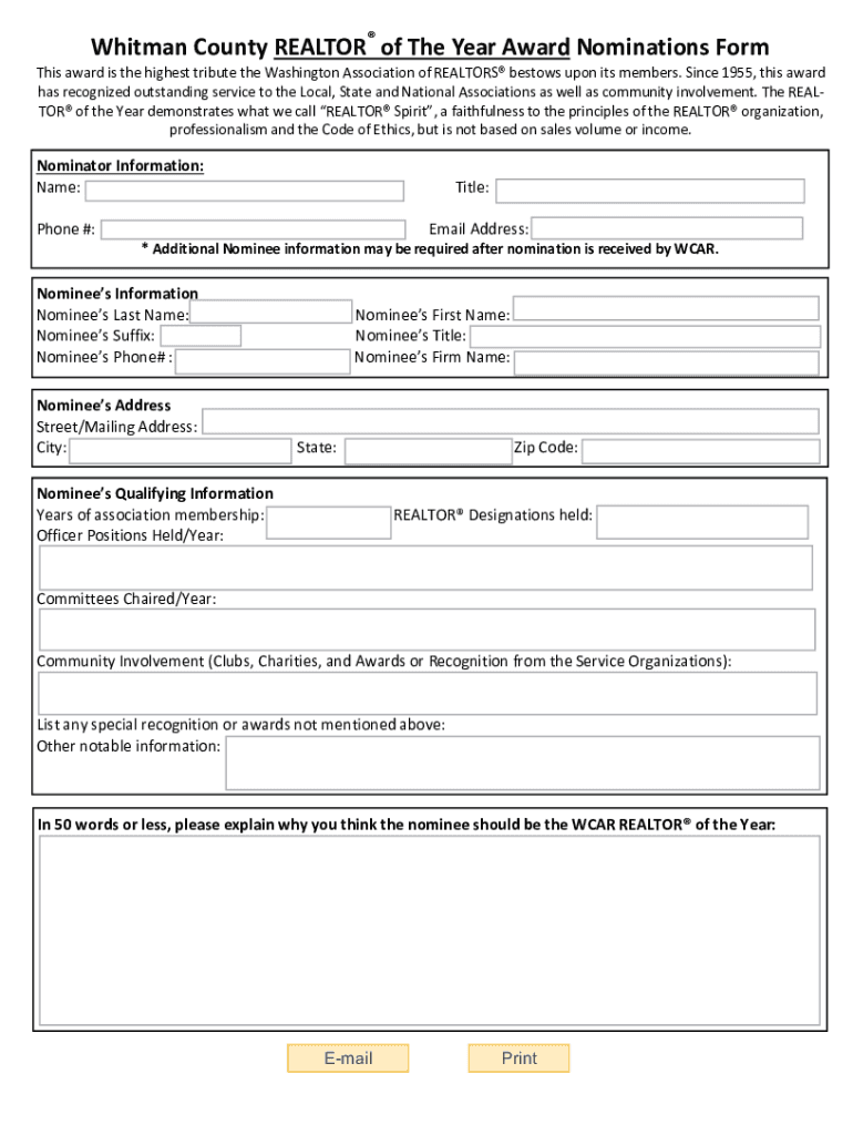 Whitman County REALTOR of The Year Award Nominations Form