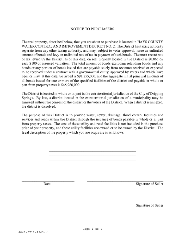 Get the free Notice-to-Purchaser - Travis County Water District 10