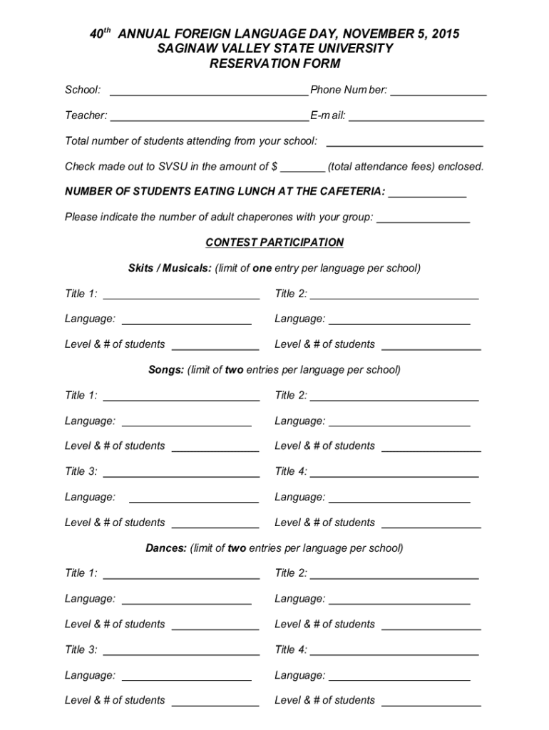 School:Phone Number:Teacher:Em ail:Total number of students attending from your school: