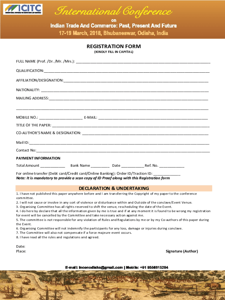 REGISTRATION FORM (KINDLY FILL IN CAPITAL)FULL NAME (Prof. /Dr. /Mr. /Mrs.): QUALIFICATION: AFFILIATION/DESIGNATION: NATIONALITY: MAILING ADDRESS: MOBILE NO.: EMAIL: TITLE OF THE PAPER: COAUTHORS