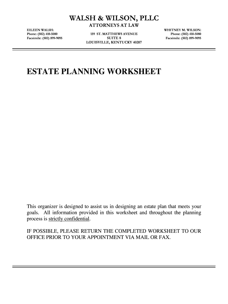 The Estate Planning Worksheet is a legal document used by individuals to organize personal and family information for creating an estate plan.