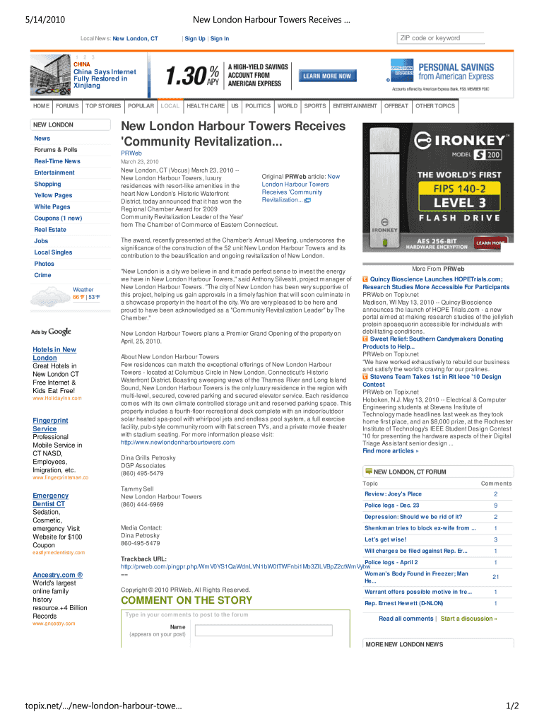 Get the free New London Harbour Towers Receives 'Community Revitalization...