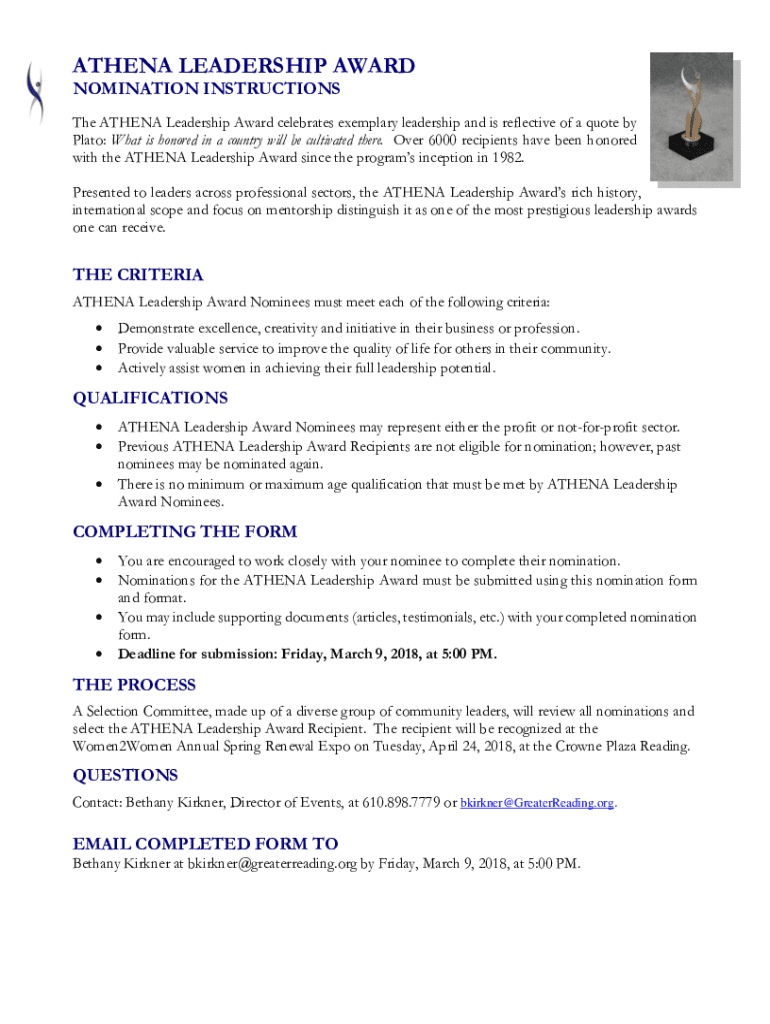 Fill out your athena leadership award nomination online with pdfFiller!