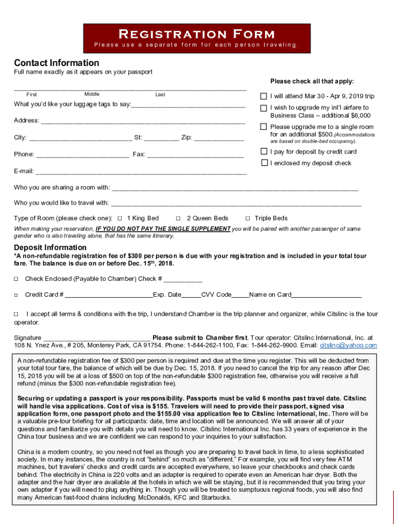 Re GI s Trey ti o n Form Please use a separate form for each person traveling. Contact Information Full name exactly as it appears on your passport FirstMiddleLastPlease check all that apply: I will