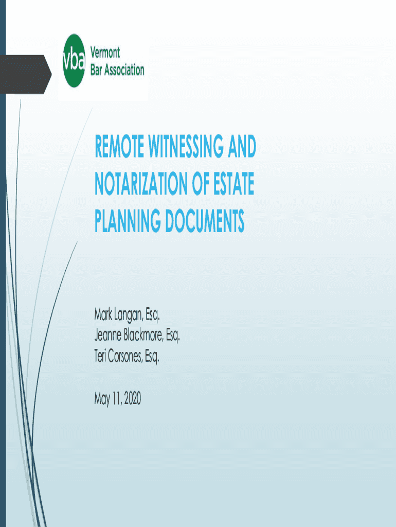 REMOTE WITNESSING AND NOTARIZATION OF ESTATE PLANNING DOCUMENTS Mark Lankan, Esq. Jeanne Blackmore, Esq. Teri Consoles, Esq. May 11, 2020Key Documents/ Background Remote Notarization Emergency RulesGuidance