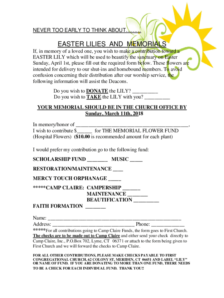 NEVER TOO EARLY TO THINK SCOUTMASTER LILIES AND MEMORIALS